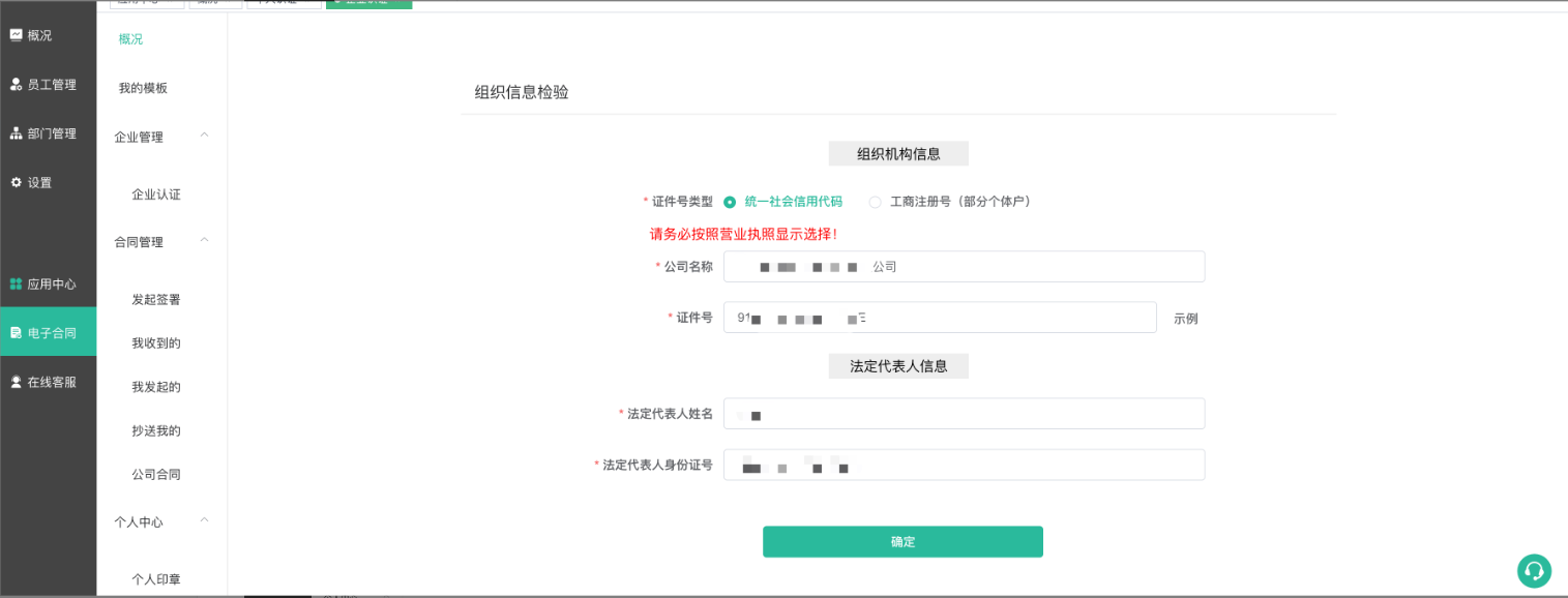 登录后创建企业,进入对应的企业--管理--电子合同应用,首先要先完成实名认证。