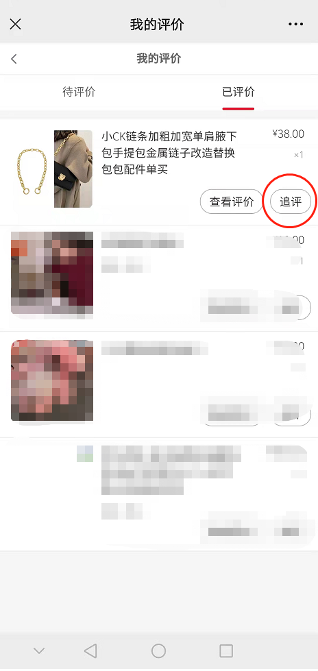 开启后评价过的订单/默认好评订单可进行追评,可以在我的订单,或我的评价可以看到追评入口,效果如下.