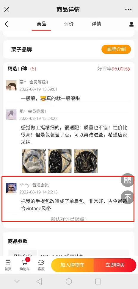 倒序置顶评论:按照会员最新评价优先置顶.