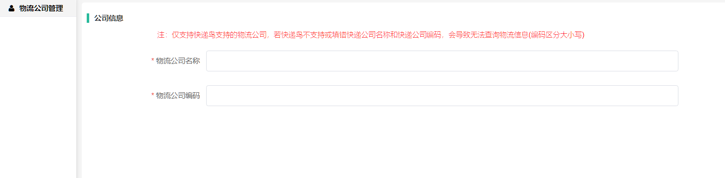 仅支持快递鸟支持的物流公司,若快递鸟不支持或填错快递公司名称和快递公司编码,会导致无法查询物流信息(编码区分大小写)。